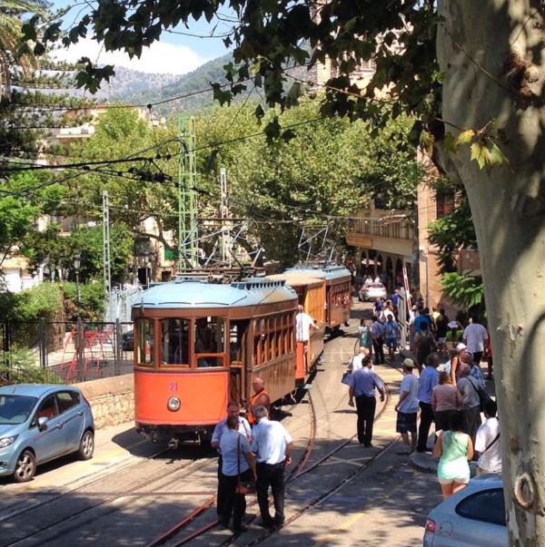Nuestra excursión empieza en la estación del tren de Sóller en la Plaza de España de Palma. Es un día caluroso de agosto. Con mi marido acordamos, que él se irá en coche a Sóller y nosotros tomaríamos el tren. Así, una vez en Soller, iríamos en tranvía hasta el puerto de Sóller, volveríamos a Sóller para recoger nuestro coche para visitar los jardines de Alfabia. Y dicho y hecho, nos montamos en el tren y salimos de Palma en dirección a Sóller. Podéis encontrar información sobre horarios y precios del tren en este enlace.