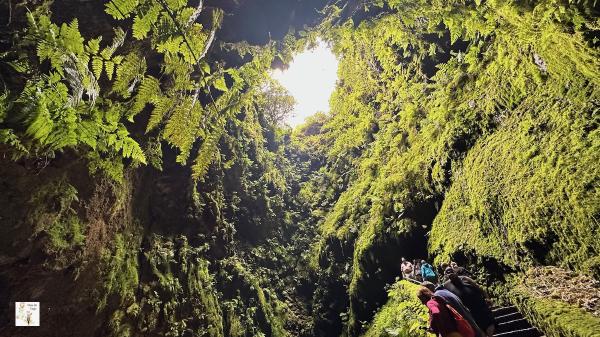 1. Ruta senderismo Mistérios Negros # Vamos ha hacer la ruta de senderismo de los Mistérios Negros (PRC01 TER). El sendero empieza en el mismo aparcamiento y está señalizado. Al principio encontramos un camino amplio, pero después nos desviamos para tomar un bosque de laurisilva, con una vegetación densa y variada. A lo largo del camino, se pueden ver formaciones volcánicas conocidas como “misterios”, que son flujos de lava solidificados. Hay varios puntos panorámicos que ofrecen vistas impresionantes del paisaje circundante. Es común encontrar musgos, helechos y árboles típicos de la laurisilva, como el laurel y el brezo.