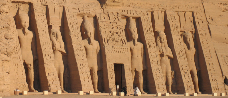 Al lado del templo de Ramsés se encuentra el templo de su esposa, Nefertari, y de la diosa Hathor: la madre. Abus simbel estuvo sepultado bajo la arenas del desierto durante milenios, hasta que el 1813 una tormenta de arena lo reveló al explorador suizo Burckhardt las cabezas de los cuatro colosos asomando entre las dunas. Abu Simbel se encuentra a 300 kilómetros de la presa de Aswan Nilo arriba. Por ello iba a ser sepultado bajo sus aguas. El valor histórico del templo ( de otros tantos ) no detuvo las intenciones de Nasser. Gracias a los esfuerzos de la UNESCO y sobretodo de colaboradores italianos los templos de Ramses y Nefertari fueron movidos piedra a piedra cien metros colina arriba (para encajar en una montaña artificial hueca).