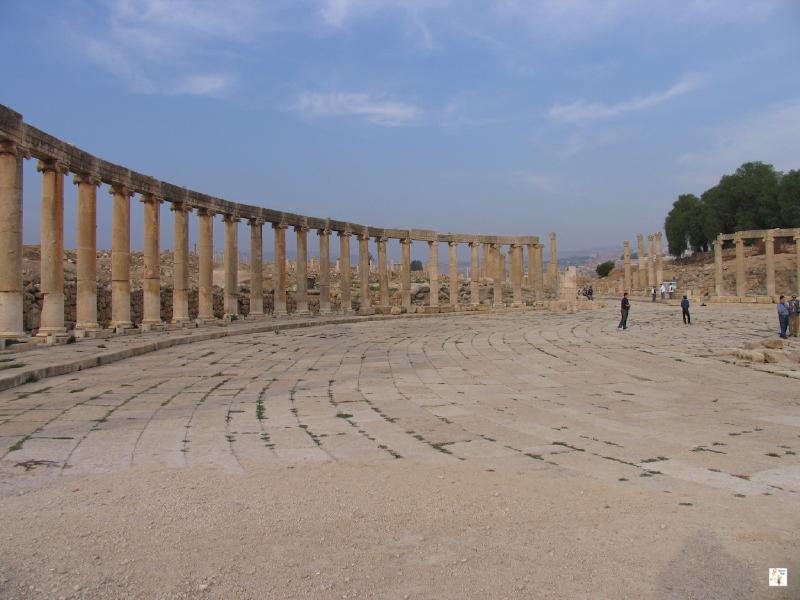 En el centro de Amman se pueden visitar el teatro romano, el foro y el odeón (siglo II d.c.). El foro y el odeón se hallan en frente del teatro y el estado de conservación es excelente. Se puede dedicar entre una y dos horas dependiendo de si se visita el pequeño museo del folclore y el de las tradiciones, que se encuentran situados justo al lado del teatro. El teatro suele ser un lugar tranquilo al que acuden pocos visitantes. En el norte de Jordania podemos encontrar los restos de la ciudad de Gadara (Umm Qais actualmente) y los restos de la ciudad de Jerash. Gadara se encuentra situada a unos 100 Km de Amman con vistas a los altos del Golán. En Gadara los restos de la villa otomana se superponen a los restos de la ciudad romana. El estado de conservación de los restos romanos no es muy bueno, pero como se encuentra en una colina el paisaje de los alrededores es muy hermoso. De vuelta a Amman nos paramos en la ciudad de Jerash situada a unos 50 Km al norte de la capital. En Jerash se hallan los restos de la ciudad romana de Gerasa, una de las ciudades de la decápolis. Jerash destaca por el excelente estado de conservación de las ruinas. La visita al atardecer proporcionar una luz excelente que da a las piedras un color rosáceo. La ciudad romana es enorme por lo que se puede pasear tranquilamente durante dos o tres horas. Una de las partes que más me gustaron fue la plaza oval o foro y el teatro del norte. En el sur de Amman, en la ciudad de Madaba, se puede visitar la iglesia ortodoxa de San Jorge, donde se halla el famoso mosaico que representa un mapa de oriente medio y Egipto con Jerusalén en el centro, el mar muerto con los peces que huyen, el Karak etc.