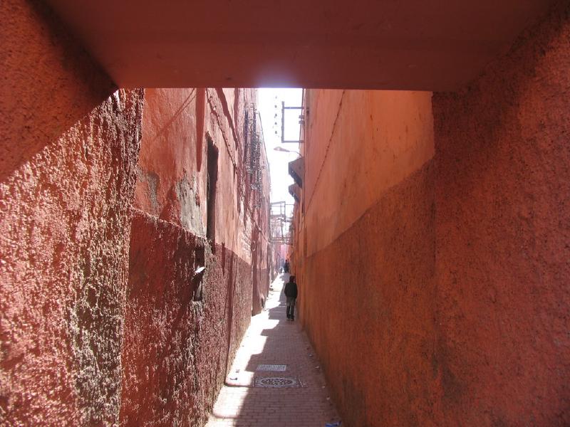 Y eso hicimos, nos adentramos en una de las calles laterales que parten de la plaza y deambulamos sin rumbo fijo. Después de un par de horas recorriendo los callejones de la medina regresamos a La Plaza para almorzar en una de las terrazas. Conviene mirar los precios de las terrazas antes de entrar en una, puesto que oscilan un poco. En nuestro caso escogimos una terraza donde ofrecían cuscus y tajín (un plato típico marroquí de carne y verduras que se cocina y se sirve en una cazuela de barro tapada). En otras terrazas ofrecen pizza y otros platos occidentales.