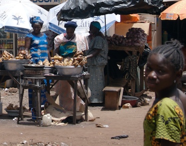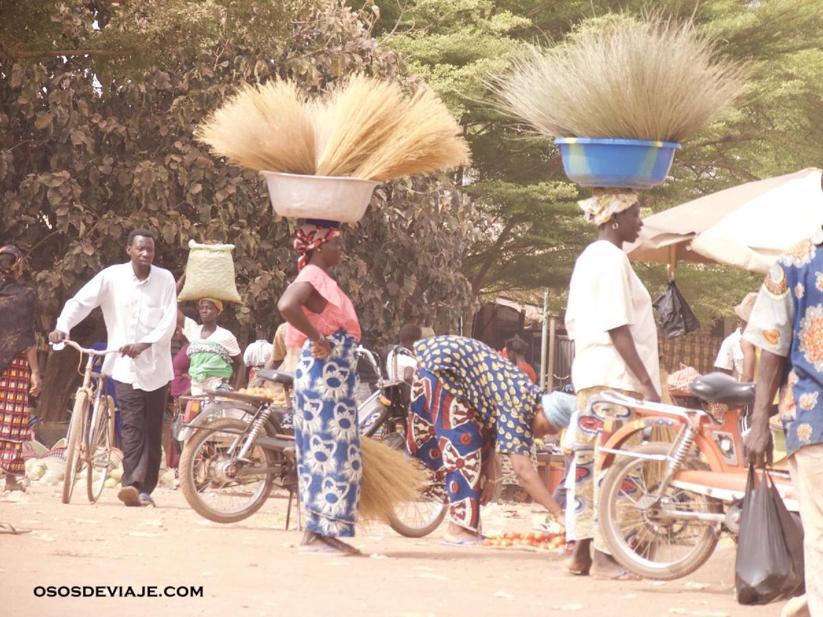 Estamos donde los autobuses de linea entre Ouaga (capital de Burkina Faso) y Bobo (ciudad económica hacia donde nos dirigimos). Mi sombrero North-Face de aire australiano mi piel rosada y la pinta de despistado me convierte en una de las atracciones. Lástima que María José se niega a empuñar la Canon y retratarme, ya que seguramente yo soy la atracción aquí. Niko me lo confirma: tengo una pinta de “guiri” muy cuidada. La esplanada de tierra rojiza abrasada por el sol de mayo en África se encuentra rodeada por un par de docenas de tenderetes en los que se venden bebidas, frutas y verduras, las galletas de sésamo, pan de bagette y asados de pollo, cordero, pescado y otras carnes que no identifico y no quiero indagar más. Huele de maravilla. Pero con este calor sólo me apetece mi cocacola y quizás unas gelletas de sésamo de vuelta en el autocar. Desde el que tecleo con el macbook en las rodillas a salvo del calor gracias al are acondicionado.