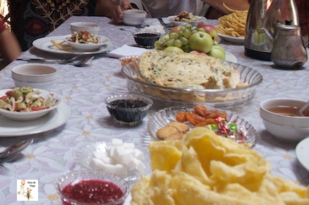 En el altiplano donde se halla Son Kol hay campamentos de yurtas dispersos aquí y allá. Nuestro campamento estaba situado cerca del lago y estaba formado por media docena de yurtas. La yurta donde nos hospedamos tenía camastros y sacos de dormir. La temperatura el interior de la yurta era de unos 5 grados, aunque por la noche encendieron la estufa que teníamos en la yurta. La estancia en la yurta cuesta unos 10 $ por persona con pensión completa. La comida que nos prepararon fue excelente y muy abundante.