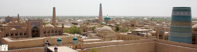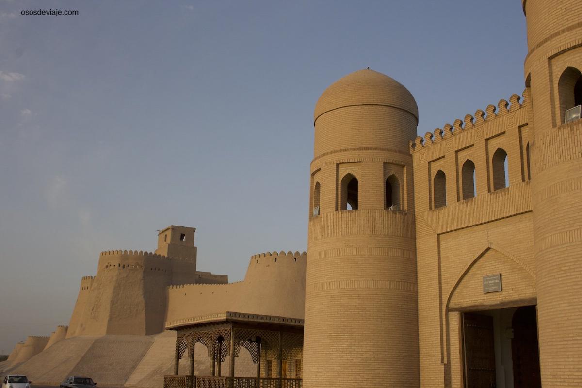 Actualmente, Ichan-Qala ha perdido el bullicio que debió tener cuando era un punto importante de la ruta de la Seda, pero a pesar de ello, los monumentos que allí se encuentran son espléndidos. Entramos en Ichan-Qala por la puerta oeste (Ota Darvoza). La entrada, que se compra en alguna de las puerta de entrada a Ichan-Qala, da acceso a la mayoría de museos, mezquitas y madrasas. No obstante, hay algunos monumentos singulares donde hay que pagar una entrada especial, por ejemplo para subir al minarete del complejo de Islam-Khodja o para entran en el mausoleo de Pahlavon Mahmud.