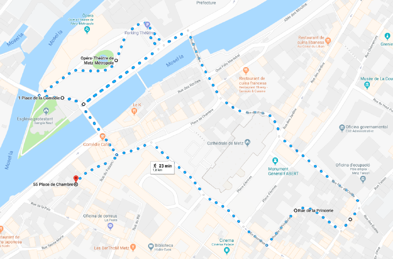 Como íbamos a pasar solo esa tarde en Metz y llevábamos muchas horas en coche decidimos caminar por el centro antiguo de Metz siguiendo las indicaciones de nuestra anfitriona.