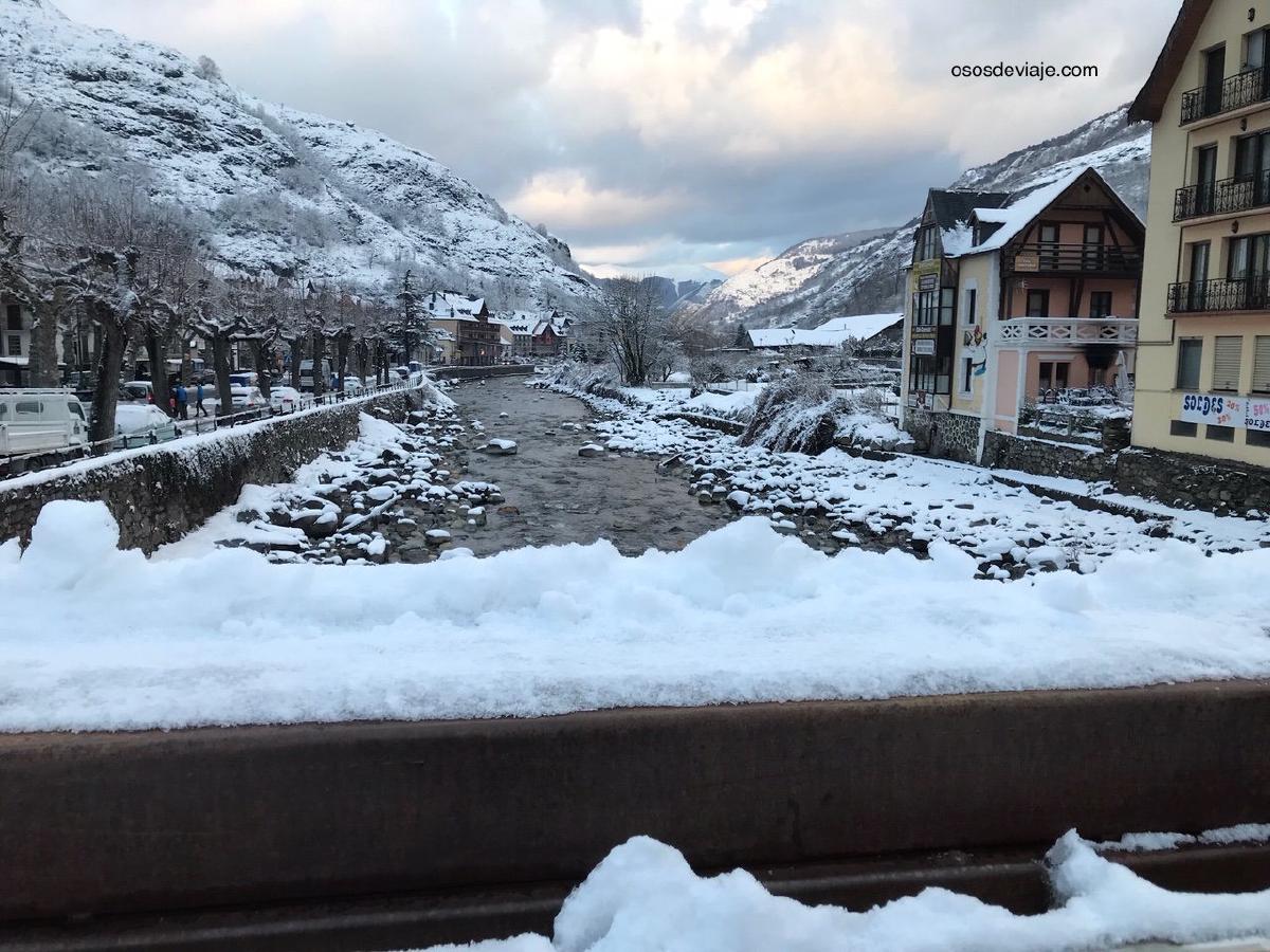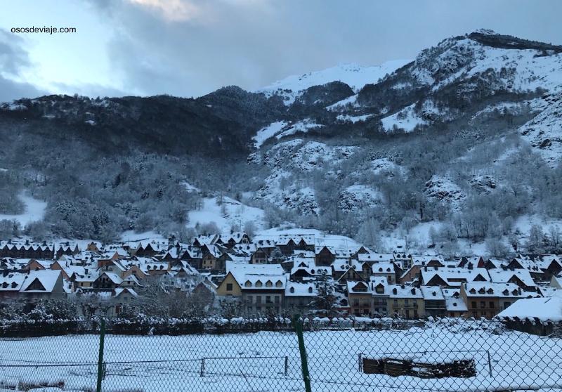De Vielha nos dirigimos a nuestro alojamiento, una casa en Bossost. Había nevado tanto, que Bossost, uno de los pueblos de baish Arán que está a menos altura estaba todo nevado. Era por la tarde y salimos a pasear por el pueblo y a jugar con la nieve recién caída.