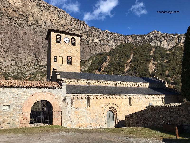 De Benavarre nos dirigimos a Sopeira y a la presa de Escales donde paramos para comer de picnic. Hacía un día soleado y gélido de invierno. El viento te calaba los huesos. Así que paramos poco rato, lo suficiente para comer, ver el monasterio de Santa María d’Alaó por fuera y pasear hasta el puente románico que hay junto a la central eléctrica. También paramos en la presa de Escales para que los niños vieran la impresionante obra.
