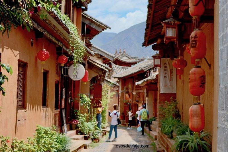 El centro del pueblo está libre de coches puesto que las calles son peatonales. En las calles del centro predominan guest houses, restaurantes, cafés o tiendas locales, todo muy bien conservado. Y lo que es más importante sin hordas de turistas chinos. Los comerciantes trabajan en lo suyo y tu puedes pasear tranquilamente sin que te digan nada y sin aglomeraciones y sin coches. Los edificios son bajos y en sus construcción se combina el barro con la madera.