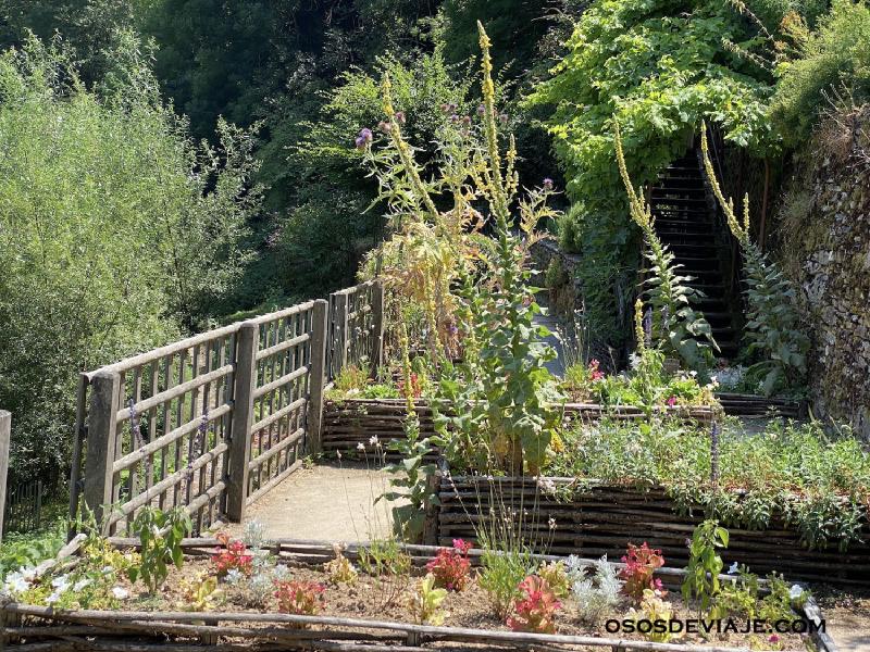 Al bajar al pueblo se recorren fácilmente sus calles empinadas. El pueblo cuenta con un pequeño jardín medieval que vale la pena visitar. Tamibén se puede bajar hasta un puente colgante. El lugar cuenta con un restaurante y un bar.