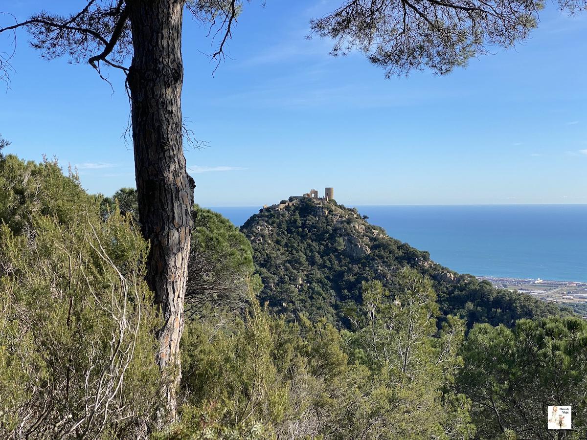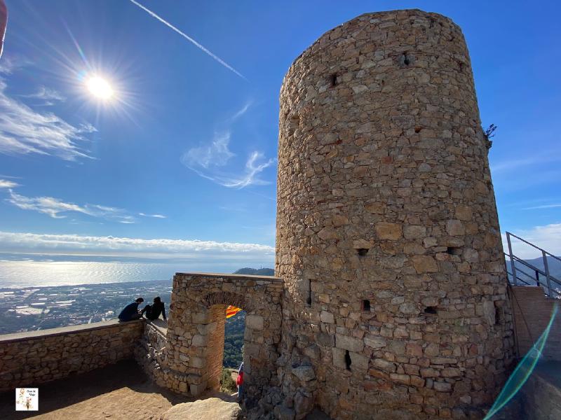 Una vez en la cima de la colina entramos en los restos del castillo y allí tenemos nuestro premio, las vistas fantásticas de 360 grados de toda la costa del Maresme.