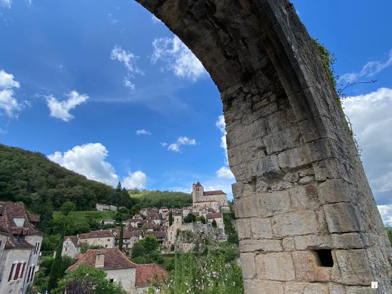 Entramos en el pueblo por la Porte de Rocamadour o Porte de la Pelissaria****. Al llegar a la puerta no puedes evitar pararte para ver la preciosa vista de Saint Cirq.