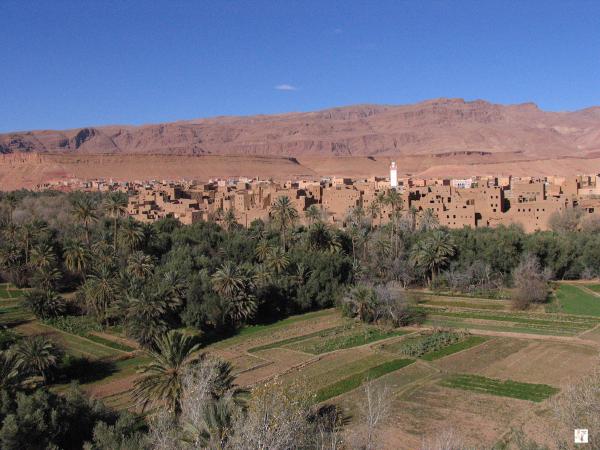 El sur de Marruecos se caracteriza por sus espectaculares paisajes como los paisajes del valle de Dra, las dunas de Merzouga, la garganta de Todra y los oasis. Estos últimos, se extienden kilómetros y kilómetros en los valles marroquíes, imagen que a priori puede contrastar con nuestra idea de cuatro palmeras. Estos palmerales son auténticos laberintos, y en su interior se mantienen pueblos que no son visibles desde fuera. Además del cultivo de dátiles en los oasis las familias cultivan la tierra en pequeñas parcelas obteniendo agua a través de un complejo sistema de irrigación. Estos palmerales son sin duda uno de los paisajes que más me impresionaron del sur marroquí. Los dos palmerales que más me gustaron fueron el oasis del Todra, muy cerca de la garganta del mismo nombre y de la localidad de Tinerhir y el oasis de Skoura próximo a Ouarzazate.