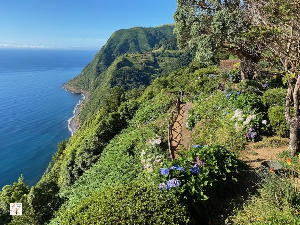 En esta entrada os contamos lo que hicimos en el este de Sao Miguel (Azores). El este es la zona más remota de la isla, con Furnas como lugar más visitado. Miradouro de Salto da Farinha y ruta a la poça azul # Desde el mirador se puede ver desde lejos una bonita cascada conocida como Salto da Farinha. Si queréis hacer una excursión se puede bajar por la pista asfaltada hasta una zona recreativa junto al mar. Desde allí se puede hacer una excursión hasta la cascada y más adelante hasta poço azul.