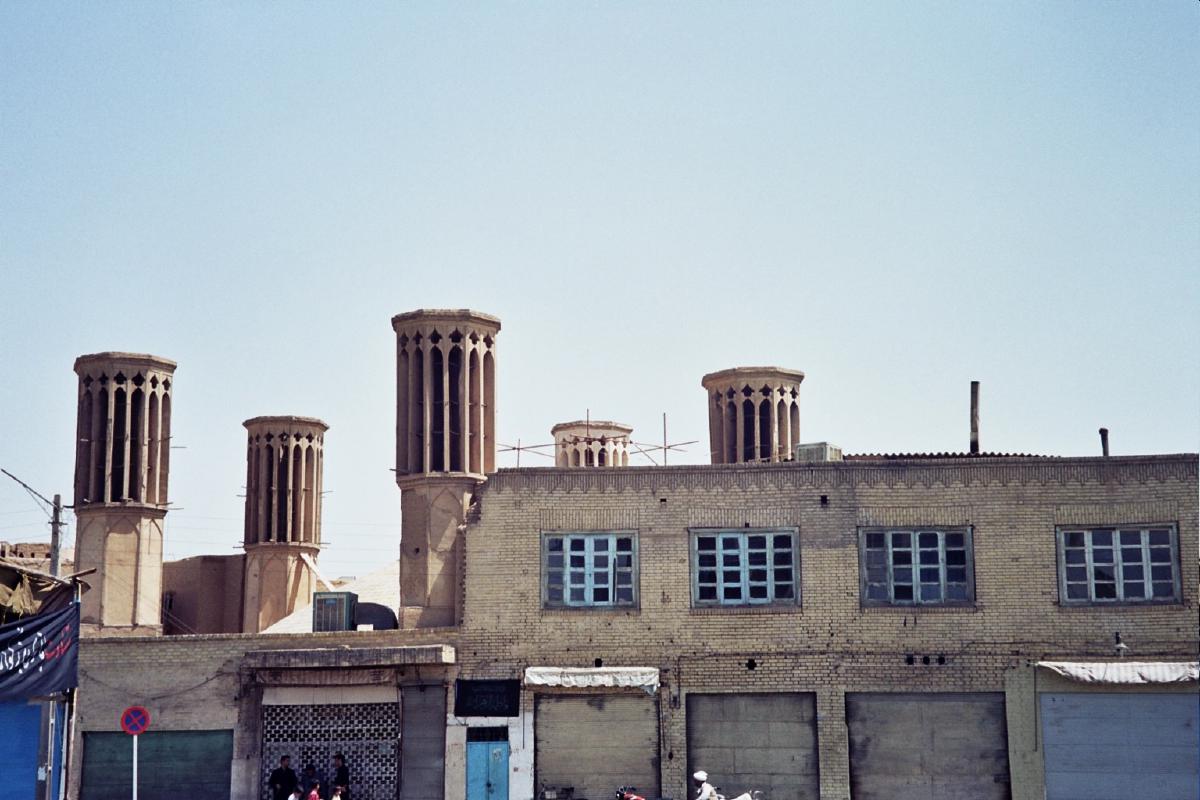 Pero la verdad es que las construcciones de Yazd son un ejemplo de buena adaptación al entorno y arquitectura sostenible. Dos de los elementos más destacados de las casas construidas con adobe en Yazd son las cúpulas circulares y las famosas torres de ventilación (bagdir). Estas últimas se utilizan, como el nombre indica, como sistema de ventilación de las casas, mucho más eficientes silenciosas y ecológicas que nuestros sistemas de aire acondicionado.