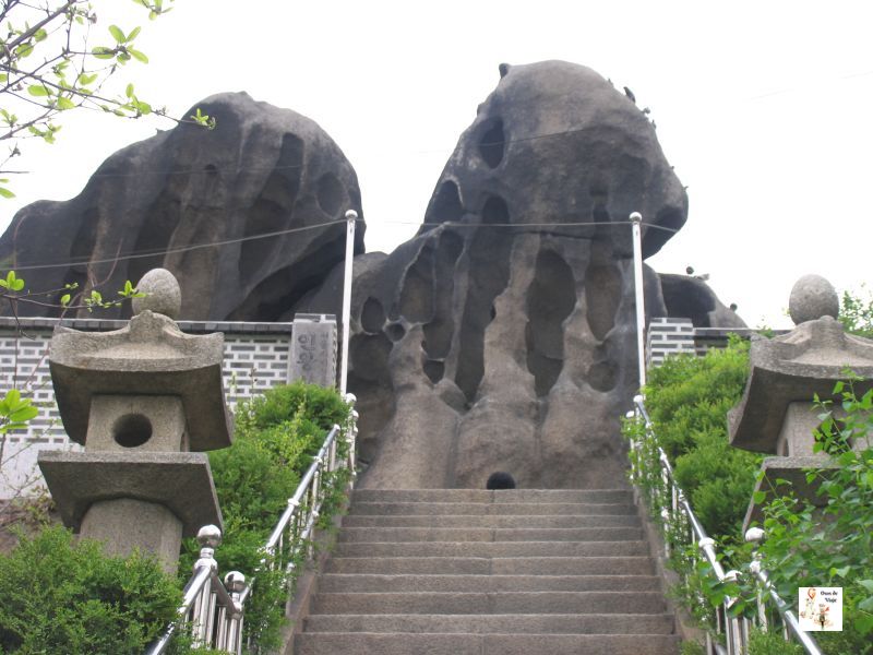 Subiendo los escalones hacia la cima de la montaña llegamos hasta una enorme campana. Junto a ella se encuentra el templo de Bongwonsa, el mayor de los templos chamanistas. Siguiendo hacia arriba encontramos el santuario de Guksadang que guarda el espíritu del rey Taejon y algunos de sus generales. Podréis encontrar información sobre este templo en aqui