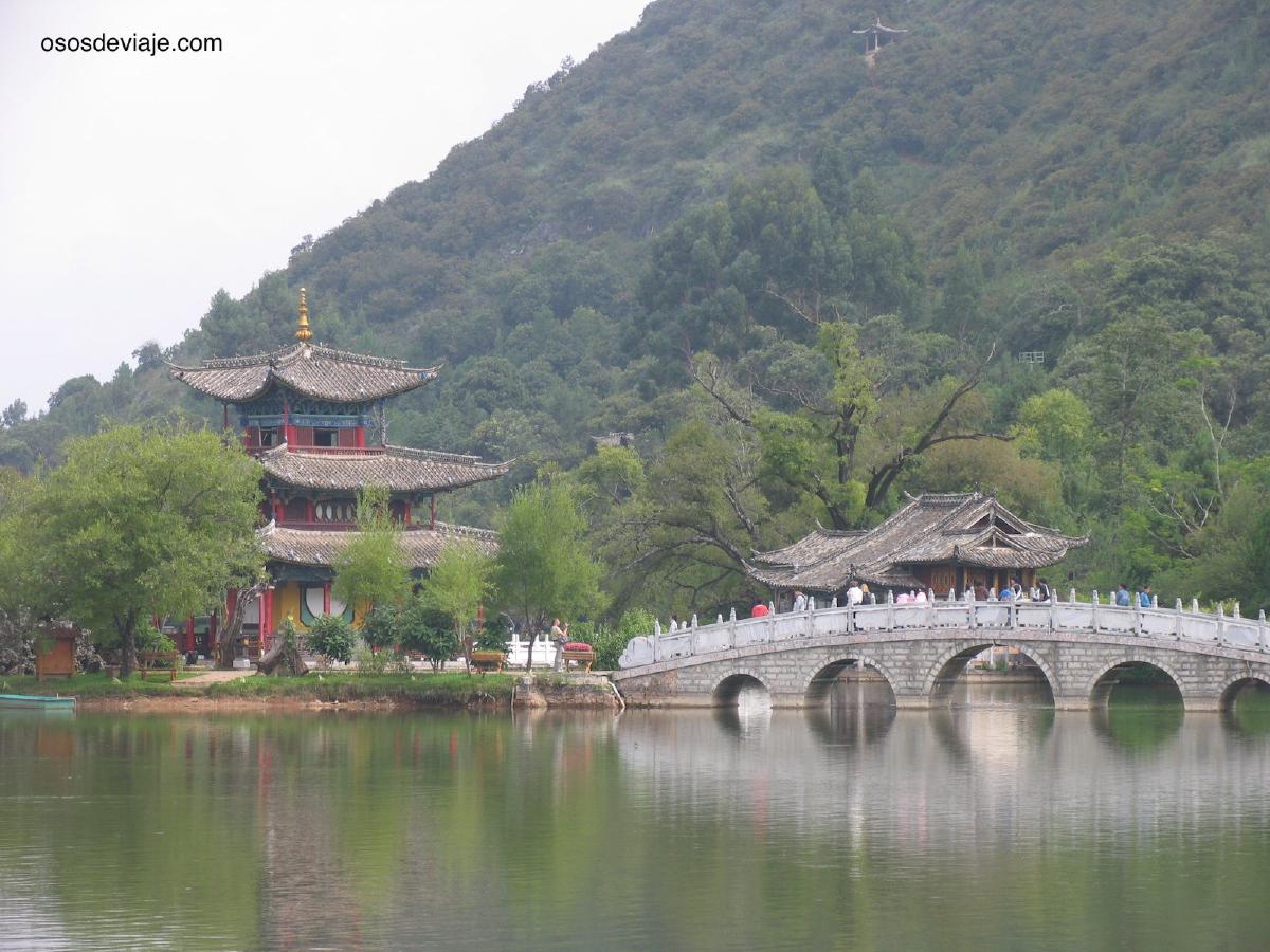Pero sin duda la visita estrella en la ciudad de Lijiang es la visita al parque del Dragón Negro (Heilongtan Gongyuan) (entreda 60 yuanes). Las fotos del pabellón de la luna con los 13 picos de la montaña Yulong al fondo aparecen en la guía de Yunnan de la Bradt y en otros reportajes sobre Yunnan. El parque del Dragón Negro es la reserva de agua que abastece la ciudad antigua de Lijiang. Para llegar hasta el parque hay que caminar en dirección norte y salir de la ciudad antigua. El camino hasta el parque desde la ciudad antigua merece la pena.
