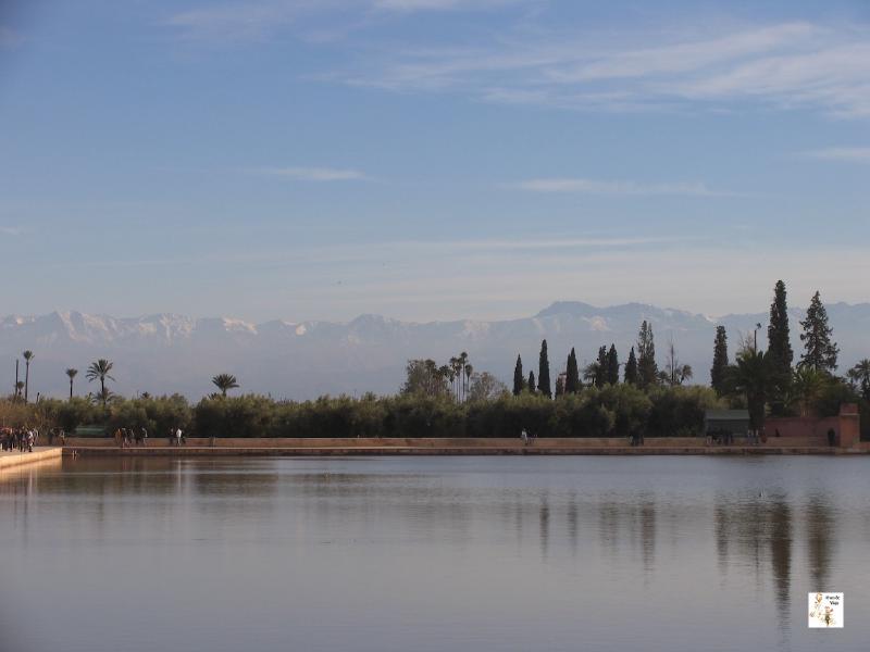Ya en las afueras de la ciudad se puede pasear por el jardín de la Menara, seguramente habréis visto la foto del estanque, con el balcón de la Menara y el Atlas de fondo en algún folleto publicitario. El lugar se llena de gente que acude a pasar un rato por la tarde. Alrededor del estanque hay un campo de olivos que se llena de gente por las tardes y donde es posible que encontréis jóvenes cantando y tocando tambores.