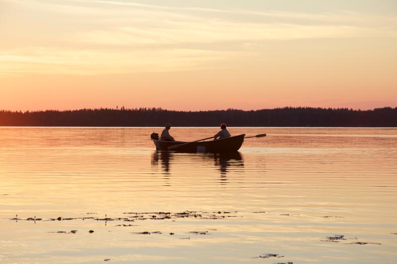 Pasamos una semana en una cabaña situada en medio del bosque junto al lago Saimaa. La cabaña tenía nombre. Se llamaba Villa Mustikka, que en finlandés quiere decir mora, porque en el bosque que circundaba la casa había un montón de moras y frambuesas con las que preparamos unos pasteles buenísimos. Los vecinos más próximos, estaban a unos 500 metros y eran los propietarios de la cabaña. Para llegar hasta villa Mustikka se accedía por un camino de tierra sin asfaltar. La ciudad más próxima, Savonlinna estaba a una hora de coche. En definitiva, un lugar muy tranquilo. Villa Mustikka contaba con un embarcadero y una barca con motor que utilizábamos para pasear por el lago y pescar. También tenía un arenero para los niños y barbacoa. Desde el comedor de la casa se veían unas puestas de sol larguísimas.
