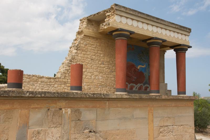 En nuestra primera visita a Creta (sin niños) hicimos una excursión de un día en coche de alquiler para visitar los restos de la civilización minóica. Nos dirigimos hacia el este, hacia la capital de la isla, Iraklio. Muy cerca de Iraklio se pueden visitar los restos de la ciudad de Knossos. Los frescos y figuras encontrados en Knossos fueron trasladados al Museo Arqueológico de Iraklio. Cuando nosotros visitamos el museo había obras, por lo que sólo se exponían un subconjunto muy pequeño de las piezas del museo.