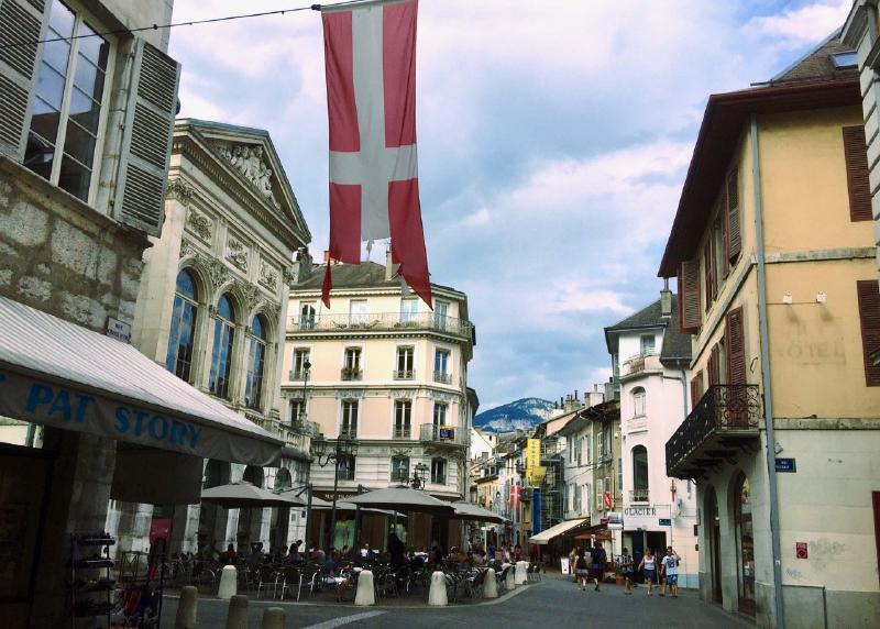 Pasamos un día y medio alojados en el Aparthotel kyriad Chambery Centre. Llegamos a Chambery por la tarde. Esa primera tarde la dedicamos a pasear por el centro de Chambery. El centro de la ciudad consta de muchas calles peatonales. Era sábado por la tarde, de agosto, por lo que no había mucha gente en la ciudad.