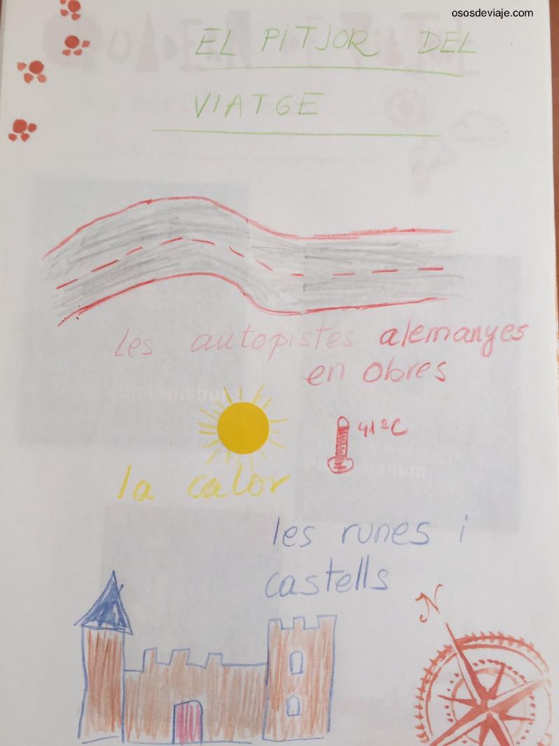 En la confección del cuaderno de viajes hemos empezado colocando lo que más les ha gustado del viaje y lo que menos. A continuación, hemos incluido una serie de páginas con algunos de los lugares que hemos visitado y algún dibujo de los niños sobre alguno de estos lugares.