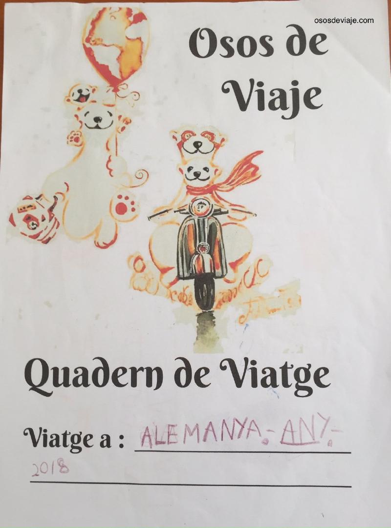 En primer lugar escogimos una portada. Para no complicarnos la vida seleccionamos el logotipo de nuestro blog, osos de viaje. Simplemente añadimos un espacio al final del dibujo para que nuestros hijos escribieran un título para el viaje.