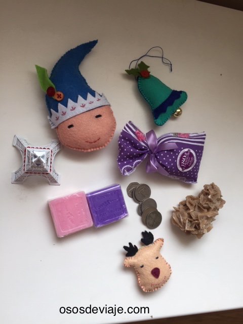Muchos de nosotros compramos algunos recuerdos durante nuestros viajes. A veces, como una familia con la que coincidimos en diversos viajes, compran tantas cosas que no les caben en casa y las almacenan en el garaje de casa. Con esta idea en mente he comprado algunos objetos con un precio simbólico o bajo para colocar en las bolsitas del calendario de adviento. Por ejemplo, postales, jabones artesanos o bolsitas de lavanda. También he utilizado recursos como los siguientes:
