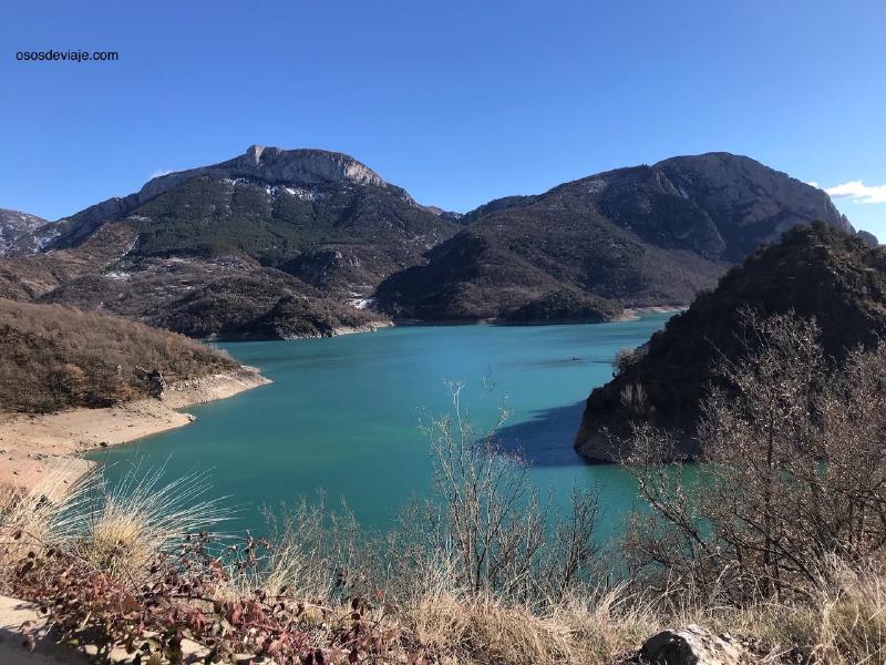 De Benavarre nos dirigimos a Sopeira y a la presa de Escales donde paramos para comer de picnic. Hacía un día soleado y gélido de invierno. El viento te calaba los huesos. Así que paramos poco rato, lo suficiente para comer, ver el monasterio de Santa María d’Alaó por fuera y pasear hasta el puente románico que hay junto a la central eléctrica. También paramos en la presa de Escales para que los niños vieran la impresionante obra.