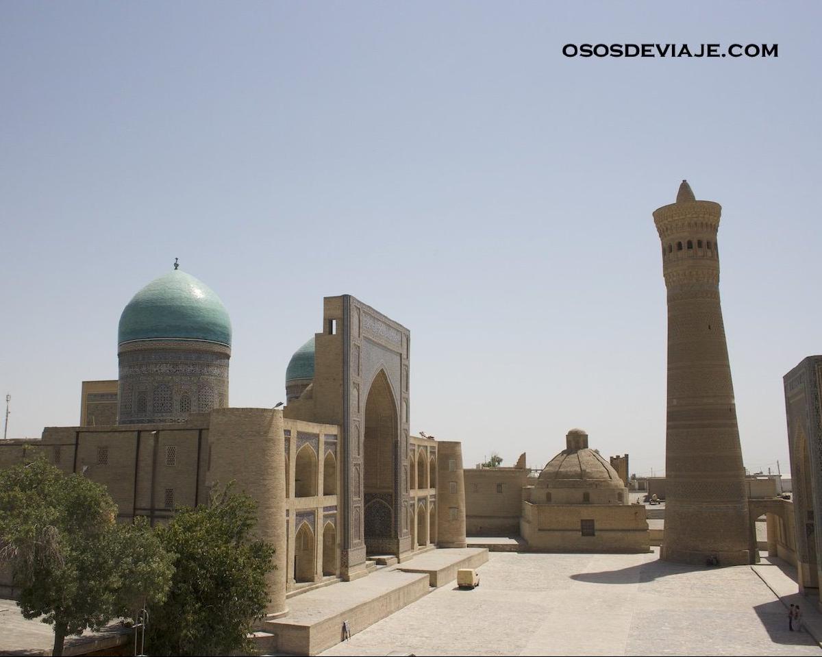 La siguiente parada és el complejo de Kalyan. El minarete Kalyan también conocido como la torre de la muerte ha sido durante siglos el símbolo de Bujara y del Islam. Data del siglo XII i fue durante mucho tiempo el lugar de ejecuciones. Los condenados eran lanzados desde la torre. Junto al minarete Kalyan se encuentra la madrasa de Miri-Arab una de las pocas madrasas en activo que quedan en Uzbekistán. Data del siglo XVI y ha actuado como escuela coránica durante V siglos (con algún que otro periodo de interrupción). En frente de la madrassa se halla la mezquita Kalyan, la mezquita principal de Bujara. Se trata de una construcción expléndia cuyas dimensiones son comparablesa a las mezquitas construidas por los timuritas en Samarcanda y Herat.