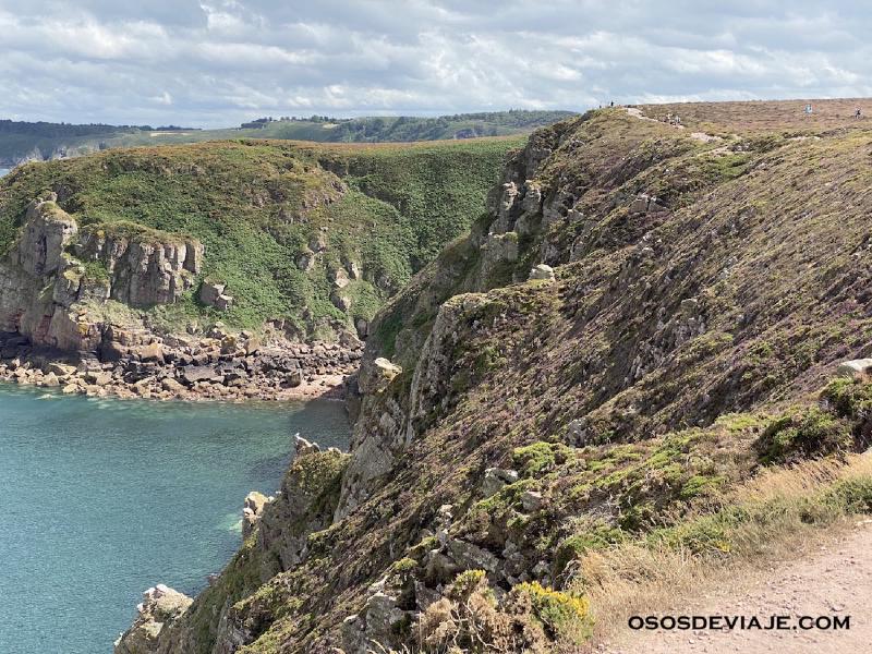 Los dos tramos del GR 34 que hicimos cerca de Cabo Frehel son bastante planos. No obstante, en el segundo tramo hay partes que pasan bastante cerca del acantilado junto al mar.