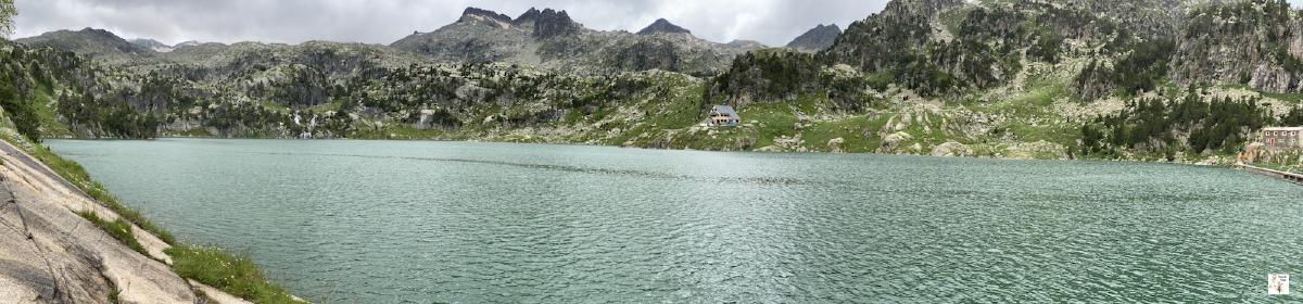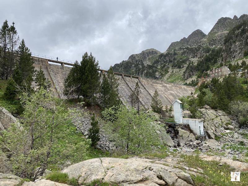 Después de cruzar el estanh dera Lòssa hay que seguir subiendo hacia la derecha hasta ver la gran presa de Colomers. Tras el tramo final de ascenso llegamos al Estanh gran de Colomers. Nos encontramos a poco más de 2000 metros de altura. Tenemos que atravesar la presa para llegar al antiguo refugio de Colomers, ahora cerrado al ser sustituido por uno nuevo, situado algo más adelante.