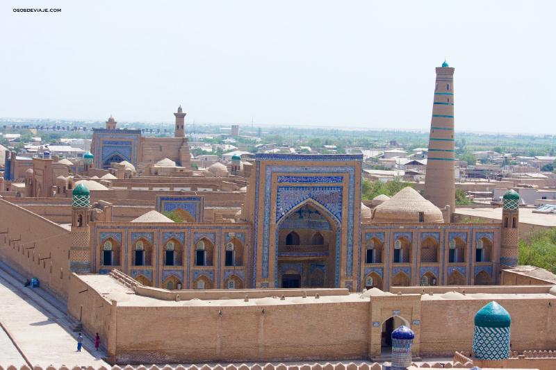 La ciudadela de Jiva es una pequeña ciudad situada en la región de Khoresm, al sur de la ciudad de Urgench, al sur del río Amu-Darya, en Uzbekistán, en Asia central. Ninguna otra ciudad de Asia central conserva una parte antigua tan bien preservada como la ciudad antigua Ichan-Qala de Jiva. Ichan-Qala significa literalmente fortaleza interior y se trata de una auténtica ciudad amurallada llena de palacios, madrasas, mezquitas y minaretes: una auténtica ciudad museo al aire libre. La conservación de Ichan-Qala se debe en parte a los programas de restauración de los soviéticos iniciados durante los años 1970 y 1980. Leer más sobre Jiva.