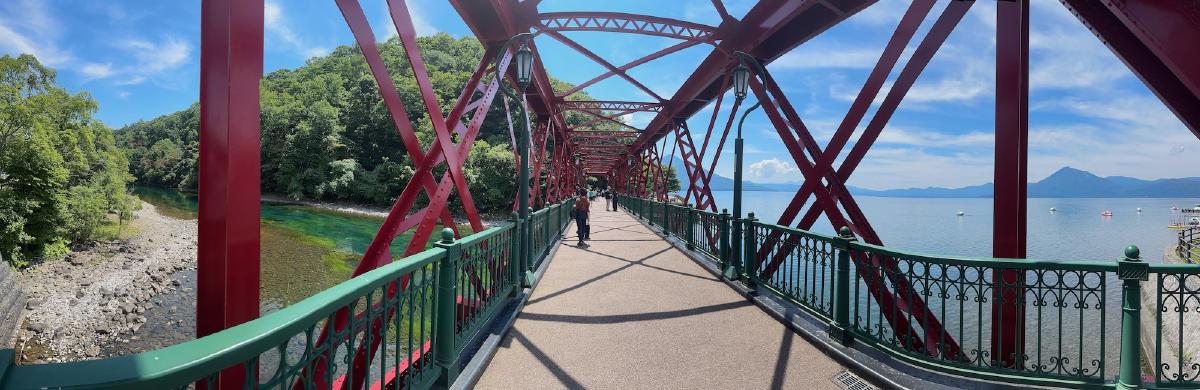En esta zona realizamos la ruta Futami Jōzan Road, que discurre junto al río Toyohira. Es un recorrido sencillo de unos 2,5 kilómetros, que atraviesa puentes, pequeños parques y zonas boscosas. La ruta permite disfrutar del paisaje fluvial y del entorno natural del Parque Nacional Shikotsu-Tōya, y es especialmente conocida por los colores del otoño, aunque resulta agradable en cualquier época del año.